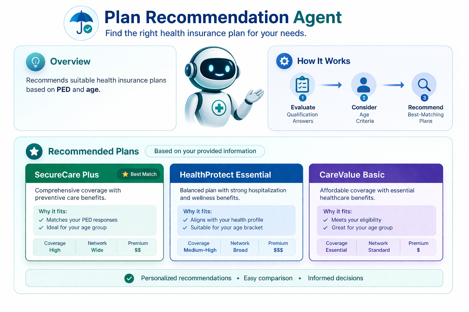 Try AgentRetrieves and answers user queries using semantic search over ActivFit Plus and Preferred healthcare plan documents.
